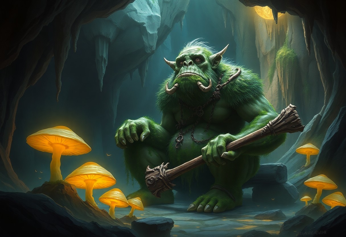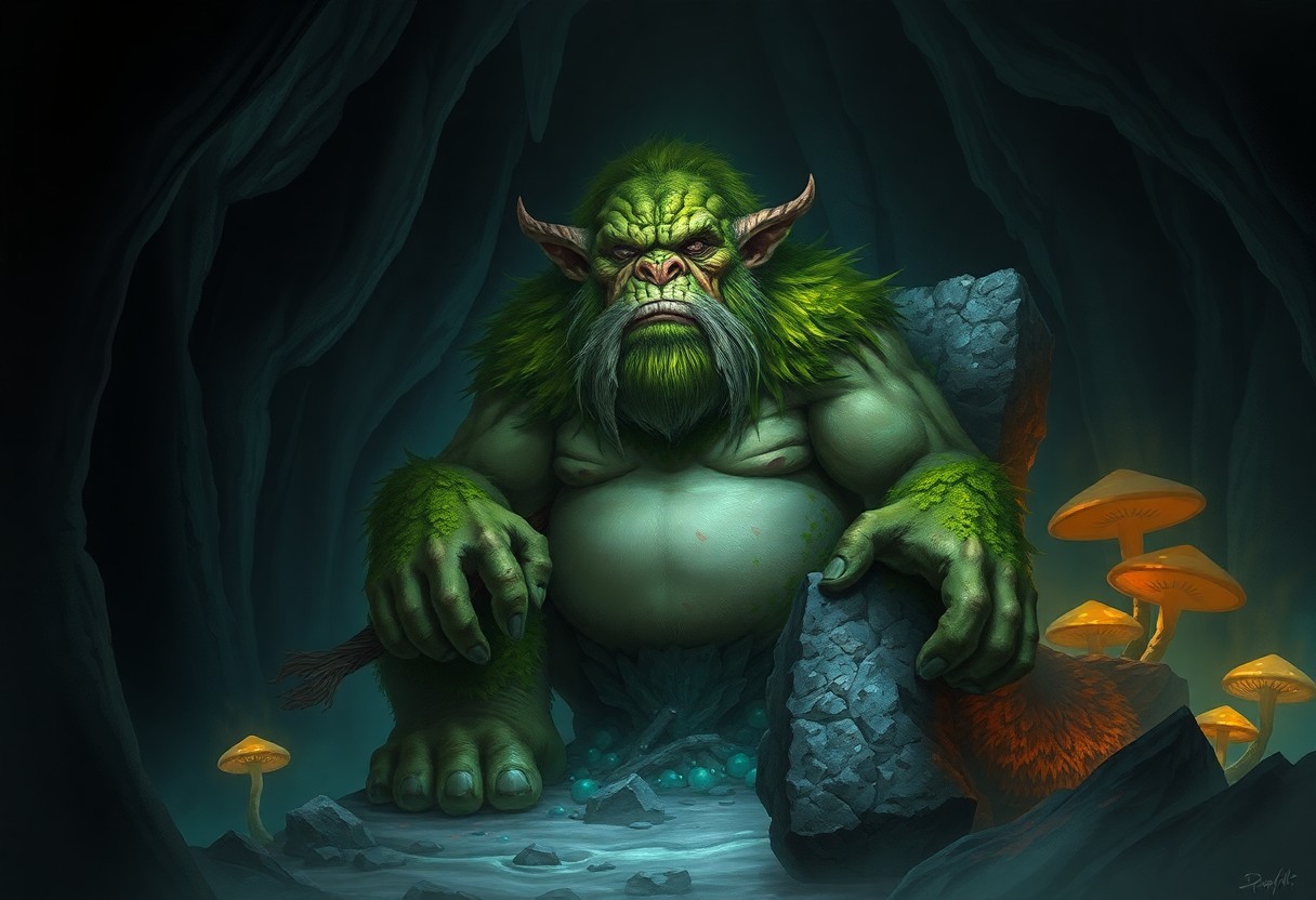 Above all, Stuhac is a towering figure, often exceeding eight feet in height, with broad shoulders and thick limbs that showcase its immense strength. Its skin has an earthy hue, resembling the damp rocks of its home, and it often appears damp and moss-covered due to the cave’s humidity. You might find its appearance both intimidating and fascinating, as it embodies the essence of nature’s wildness.